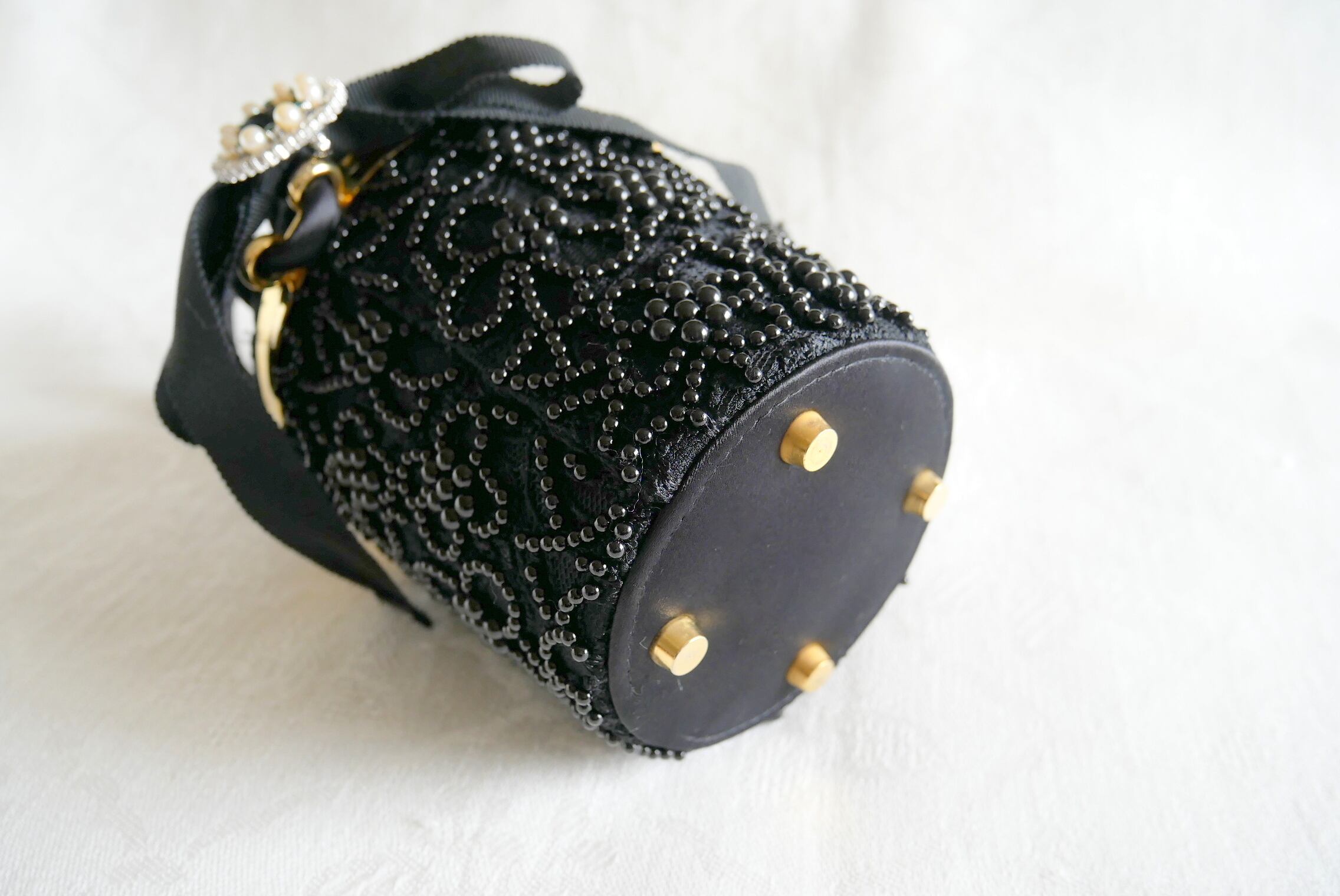 全面に、フローラル柄の黒のビーズ飾りがあります。