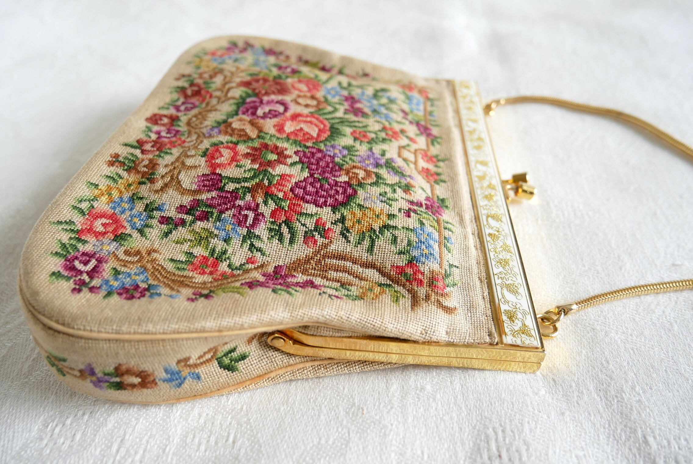 バラのブーケのプチポワン カクテル&パーティバッグ