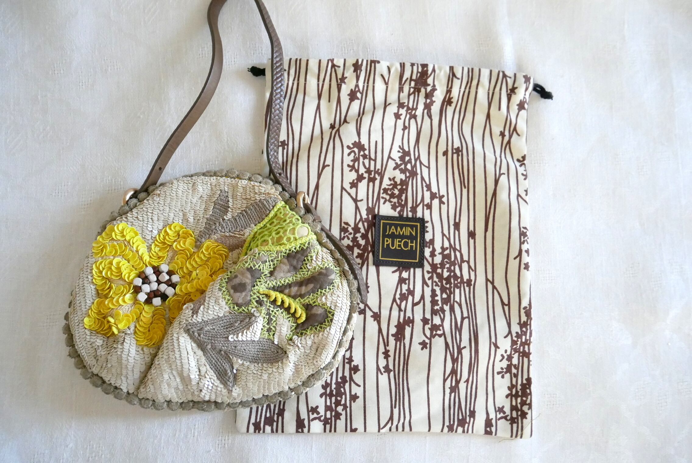 バッグ全体を、アイボリーをベースにしたスパンコールで覆ったバッグです。