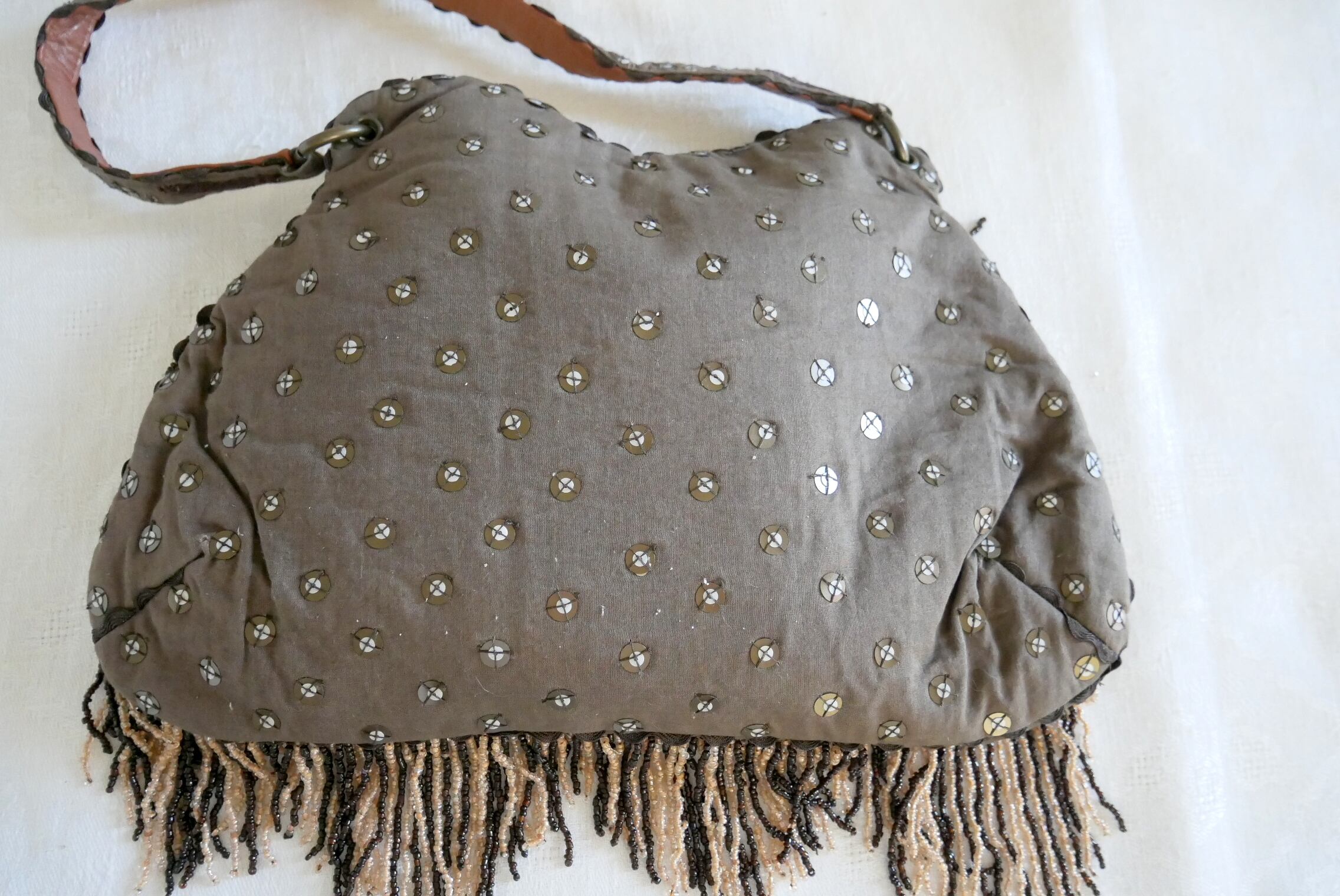 裾には、揺れる、ふんだんなビーズのフリンジがあります。