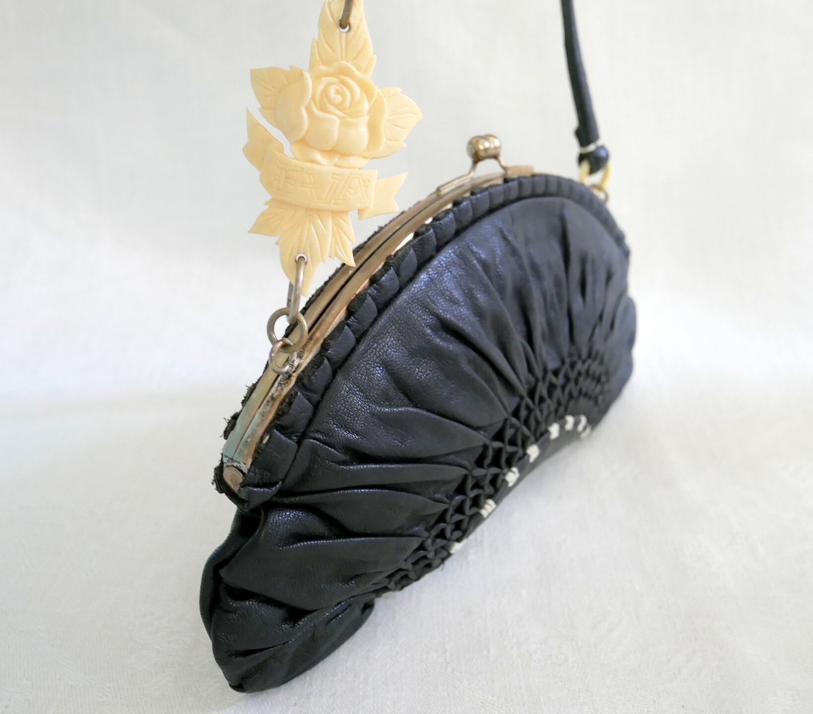 ハンドル部分はレザーで、EVAの文字のあるバラのオーナメント飾り付き。