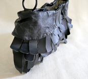 黒一色で、フリンジ風にカットしたレザーパーツを飾ったバッグです。