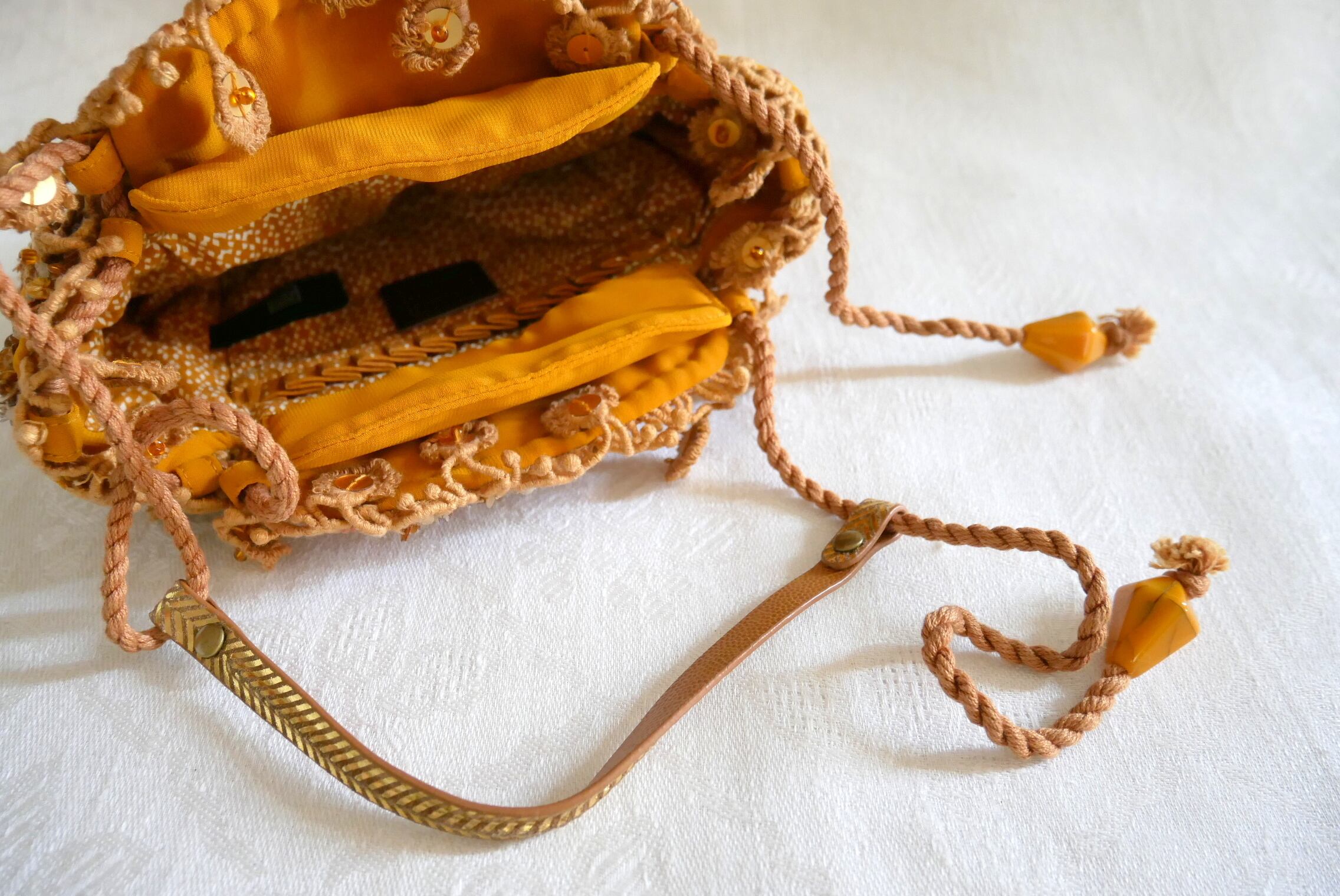 ベースはオレンジ色のデシンと上部はコットンコーデユロイで、