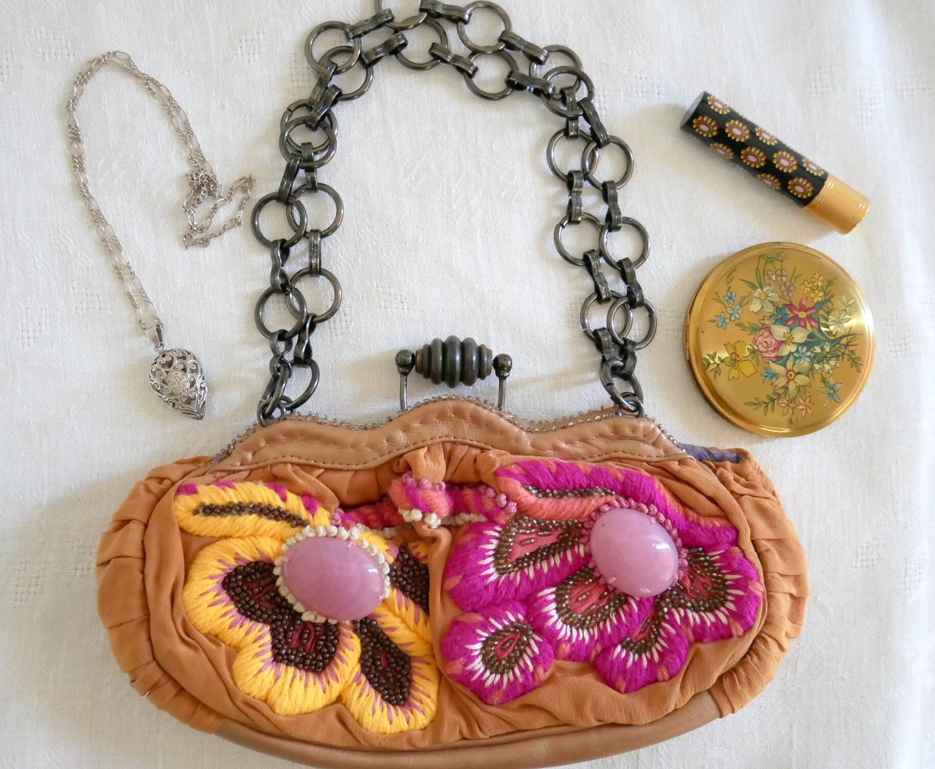 ハンドルのチェーンは、ヴィンテージ仕上げでくすみがあります。