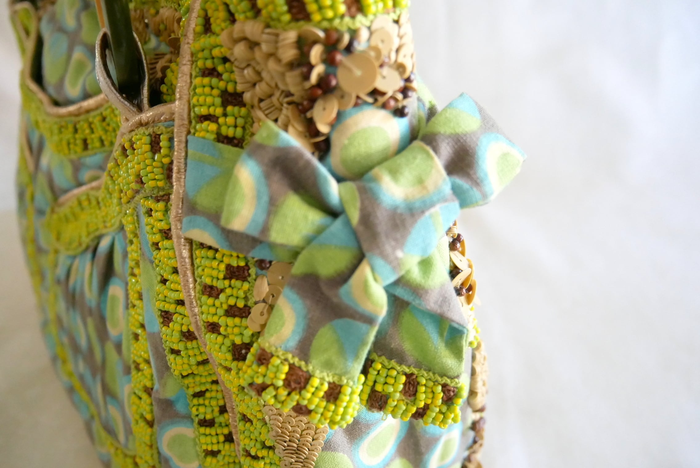 ビーズとスパンコールをふんだんにあしらった大型のバッグです。