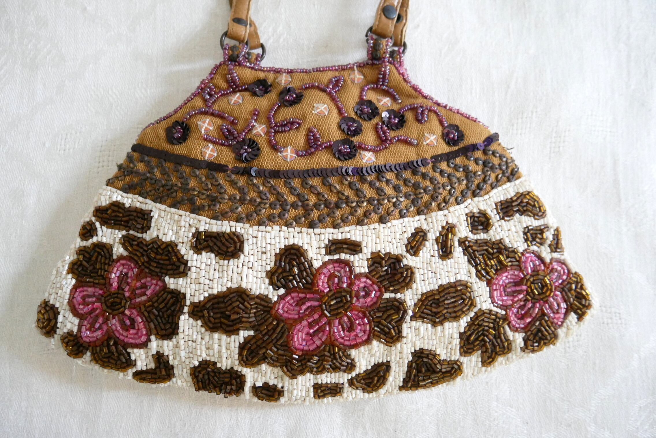 【Jamin Puech Paris】バラの絵柄オールビーズ飾り スモールハンドバッグ