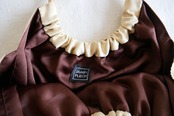 サテン生地にわずかにスレと使用感がございますが、大きく目立つダメージのない状態です。